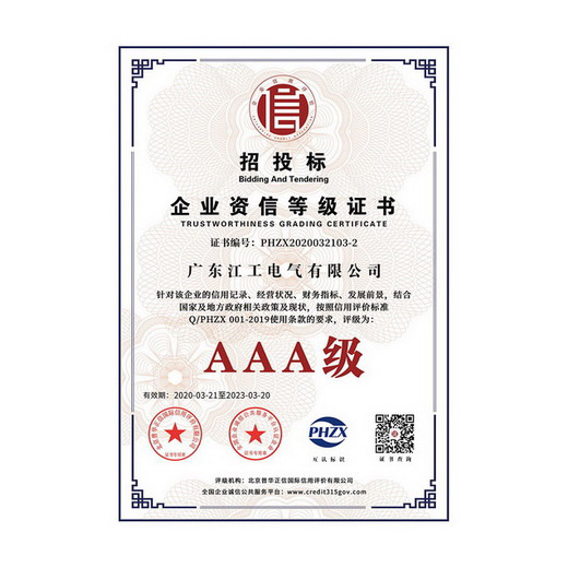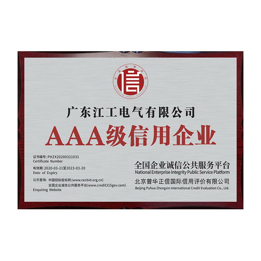 AAA级信用企业、 顺德区企业家协会 理事单位、 ISO9001-2015质量管理体系认证、 ISO14001-2015环境管理体系认证