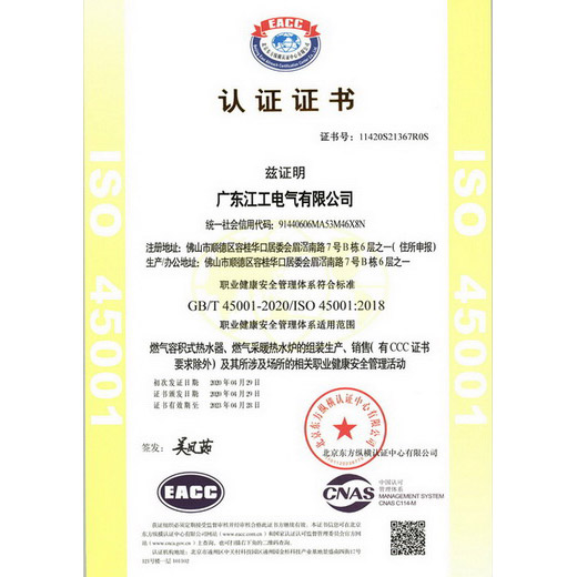 GB/T45001-2020 / GB/T45001-2018职业健康安全管理体系认证、 诚信经营示范单位、 诚信供应商企业、 质量服务诚信企业